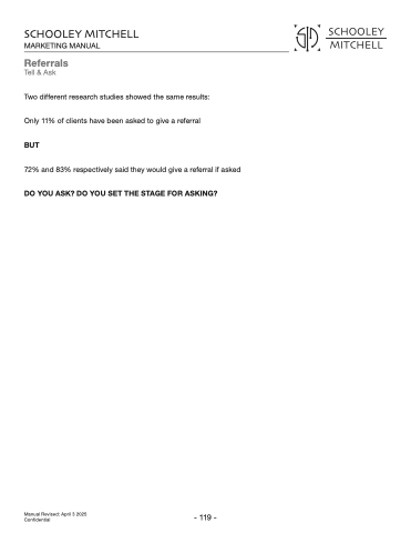 72% and 83% respectively said they would give a referral if asked DO YOU ASK? DO YOU SET THE STAGE FOR ASKING?