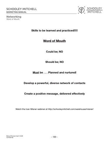 Watch the Ivan Misner webinar at http://schooleymitchell.com/warehouse/misner/