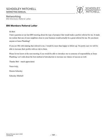 Please let me know at the next meeting if you would be able to introduce me to someone of responsibility at Jones Plumbing. Let’s talk about the best method of introduction to increase our chance of success as well.