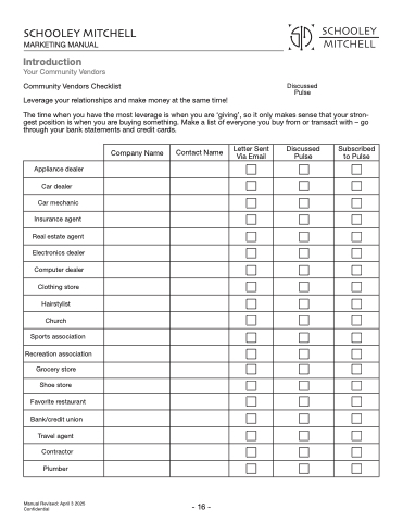 The time when you have the most leverage is when you are ‘giving’, so it only makes sense that your stron- gest position is when you are buying something. Make a list of everyone you buy from or transact with – go through your bank statements and credit cards.
