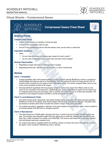 Schooley Mitchell negotiated with the propane vendor to reduce the margin from fifteen cents to nine cents for the remainder of the fixed term. Additionally, our analyst negotiated an option for the client to go on variable pricing during the off-season with no penalty and could resume on a fixed rate thereafter. The reduction to the margins resulted in $7,500 in annual savings for the client.