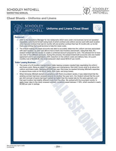 John is the Operations Manager for two restaurants which were under one business name but operated separately. John found himself losing track of which contract and uniform service went with each location. John had one contract that had 34 months left and another contract that had 16 months left, so he felt there was nothing that could be done to help him lower costs.