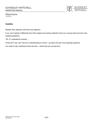 If they don’t say ‘yes’ that your understanding is correct – go back and ask more isolating questions. You need to fully understand what and why – where they are coming from.