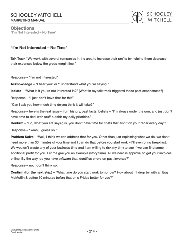 Problem Solve - “Well, I think we can address that for you. Other than just explaining what we do, we don’t need more than 30 minutes of your time and I can do that before you start work – I’ll even bring breakfast. We wouldn’t waste any of your business time and I am willing to risk my time to see if we can find some additional profit for you. Let me give you an example (story time). All we need is approval to get your invoices online. By the way, do you have software that identifies errors on past invoices?”