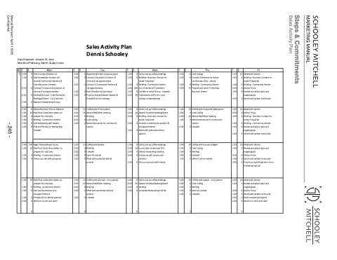 Call to set up coffee meetings Briefing - Business Contact inc. travel if required Briefing - Community Vendor Join Chamber of Commerce Call BNI or other Group - research Craft/obtain call list for cold calling or telemarketing