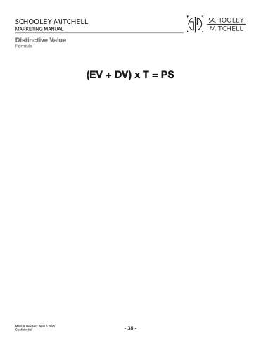 SCHOOLEY MITCHELL MARKETING MANUAL Distinctive Value Formula Manual Revised: April 3 2025 Confidential - 38 - (EV + DV) x T = PS