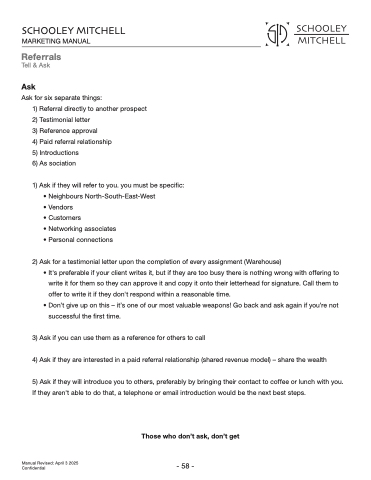 1) Ask if they will refer to you. you must be specific: • Neighbours North-South-East-West