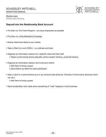 • Take a client to a seminar/show put on by someone else (Internet, Chamber of Commerce, Business Semi- nar, etc.)