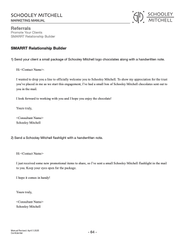 1) Send your client a small package of Schooley Mitchell logo chocolates along with a handwritten note.