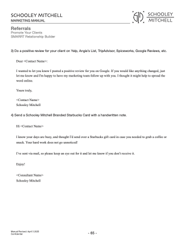 4) Send a Schooley Mitchell Branded Starbucks Card with a handwritten note.
