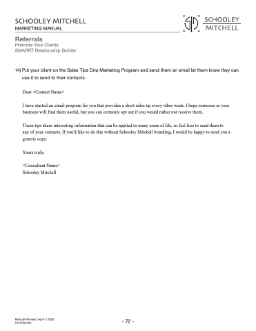 14) Put your client on the Sales Tips Drip Marketing Program and send them an email let them know they can use it to send to their contacts.