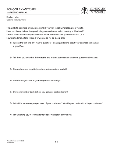 7) I’m assuming you’re looking for referrals. Who refers to you now?