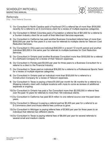 14) Our Consultant in Texas is paying referral fees of $8,000 per year for several referrals to several small and medium clients.