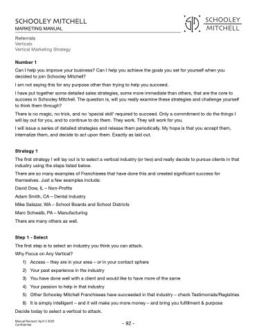 I have put together some detailed sales strategies, some more immediate than others, that are the core to success in Schooley Mitchell. The question is, will you really examine these strategies and challenge yourself to think them through?