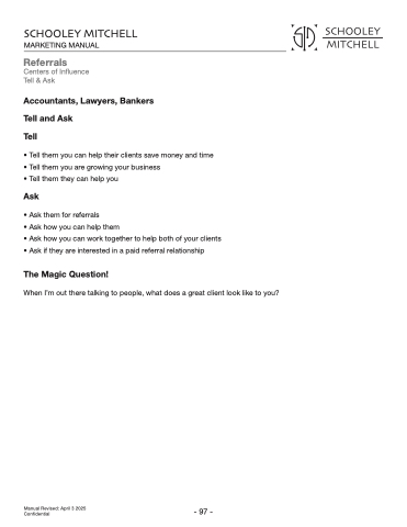 • Ask how you can work together to help both of your clients • Ask if they are interested in a paid referral relationship
